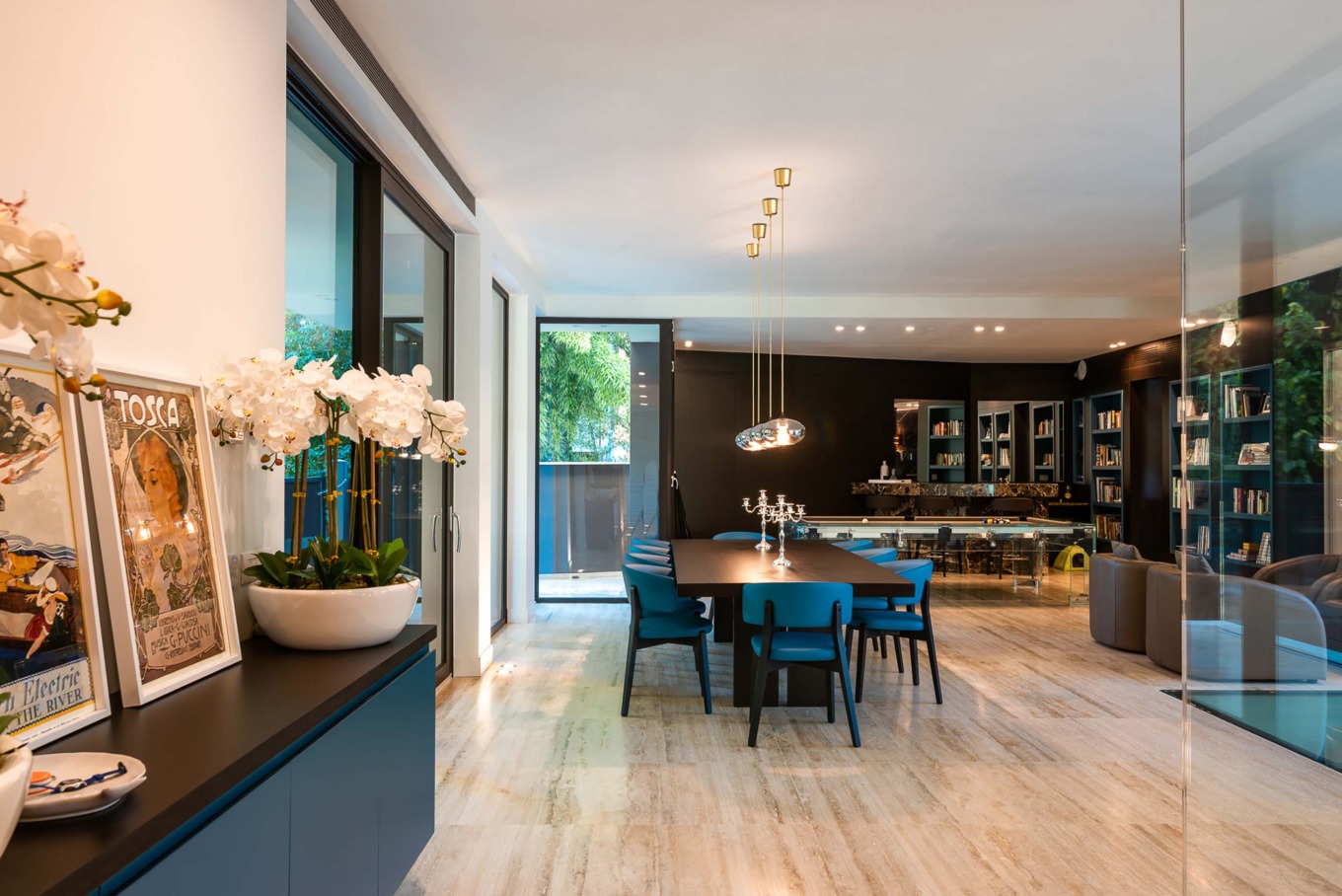 Passando da un ambiente all’altro di questa location si possono ammirare diversi spazi, forme e stili. Il design che caratterizza l’intera villa la rende perfetta per la realizzazione di shooting di alto livello e non solo. Molto particolari le pareti in marmo che rendono l’ambiente elegante e la piscina interna che si affaccia sul giardino dal design storico.