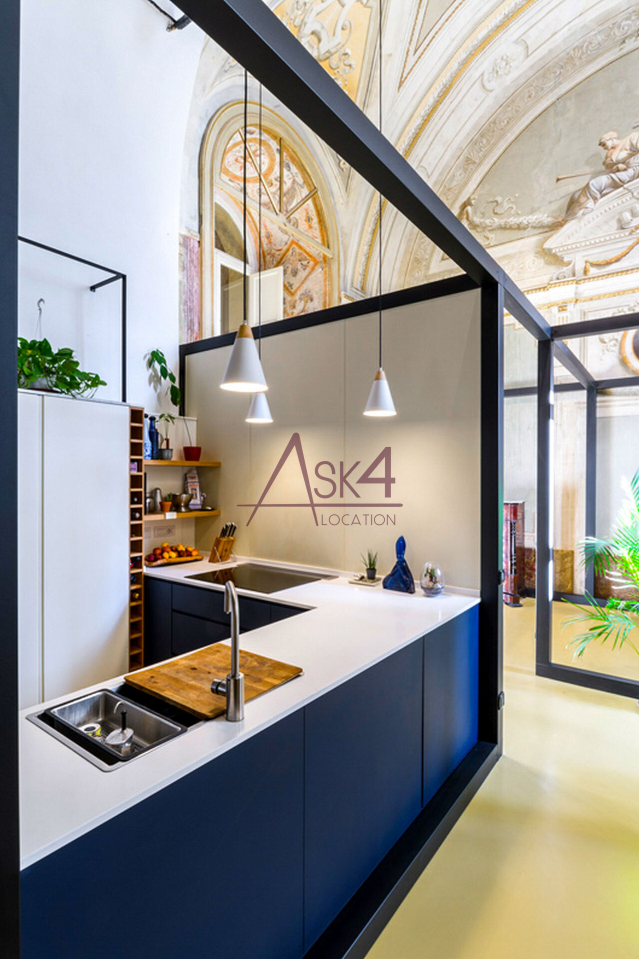 L’Appartamento di Jackie offre uno spazio suggestivo per shooting fotografici e produzioni video, con ambienti ampi e luminosi che si sviluppano sotto alte volte affrescate. La zona giorno si apre su una cucina moderna con isola centrale, circondata da una struttura a vetri dal look minimalista, che crea giochi di trasparenze perfetti per set dal forte impatto visivo.