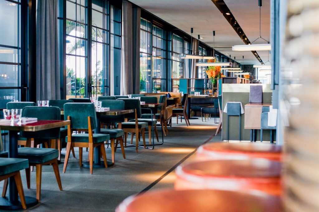 All’interno si sviluppano ambienti ariosi e inondati di luce naturale, grazie a ampie vetrate che valorizzano il living e la zona giorno. Gli arredi essenziali e i materiali scelti con cura esaltano un’atmosfera coerente, ideale per shooting di moda, video corporate o interviste.