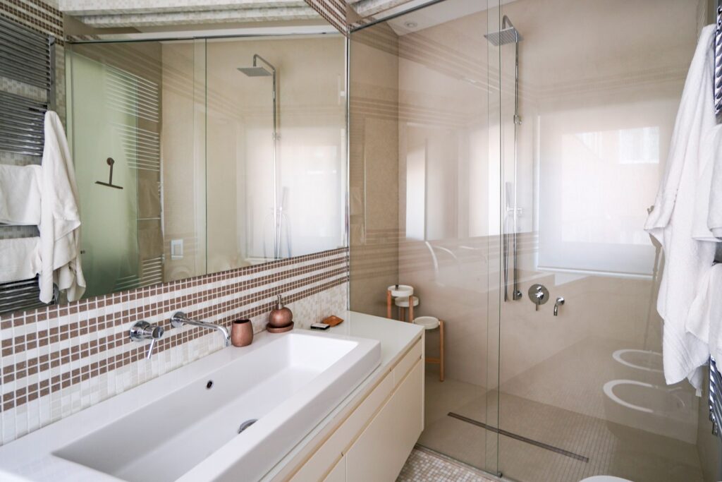 Lo stile si sviluppa tra design contemporaneo, materiali pregiati e dettagli decorativi ricercati. Le tonalità neutre, i punti luce in rame e le superfici in legno chiaro creano una cornice raffinata e versatile, ideale per set editoriali, interviste o produzioni pubblicitarie.
