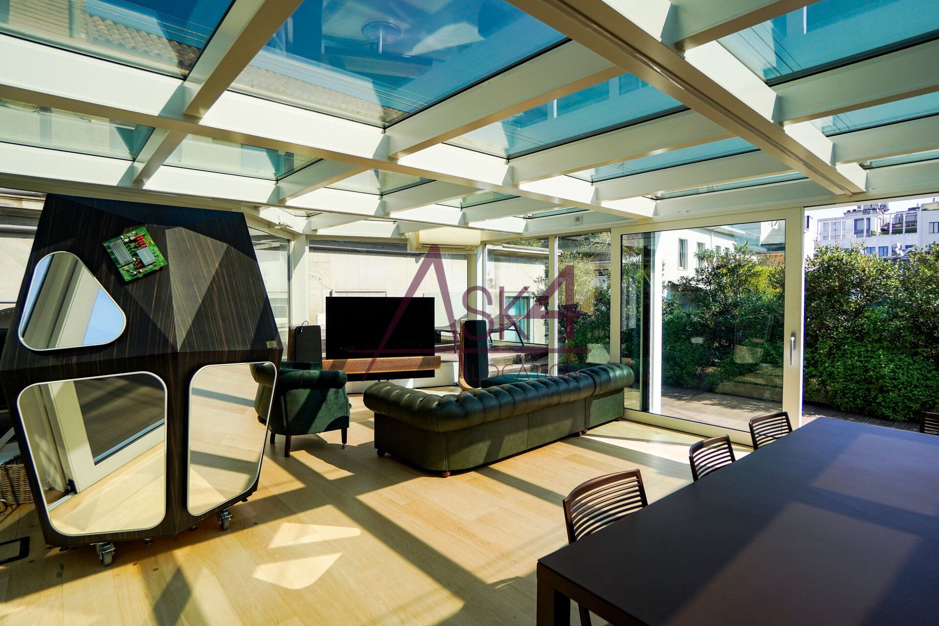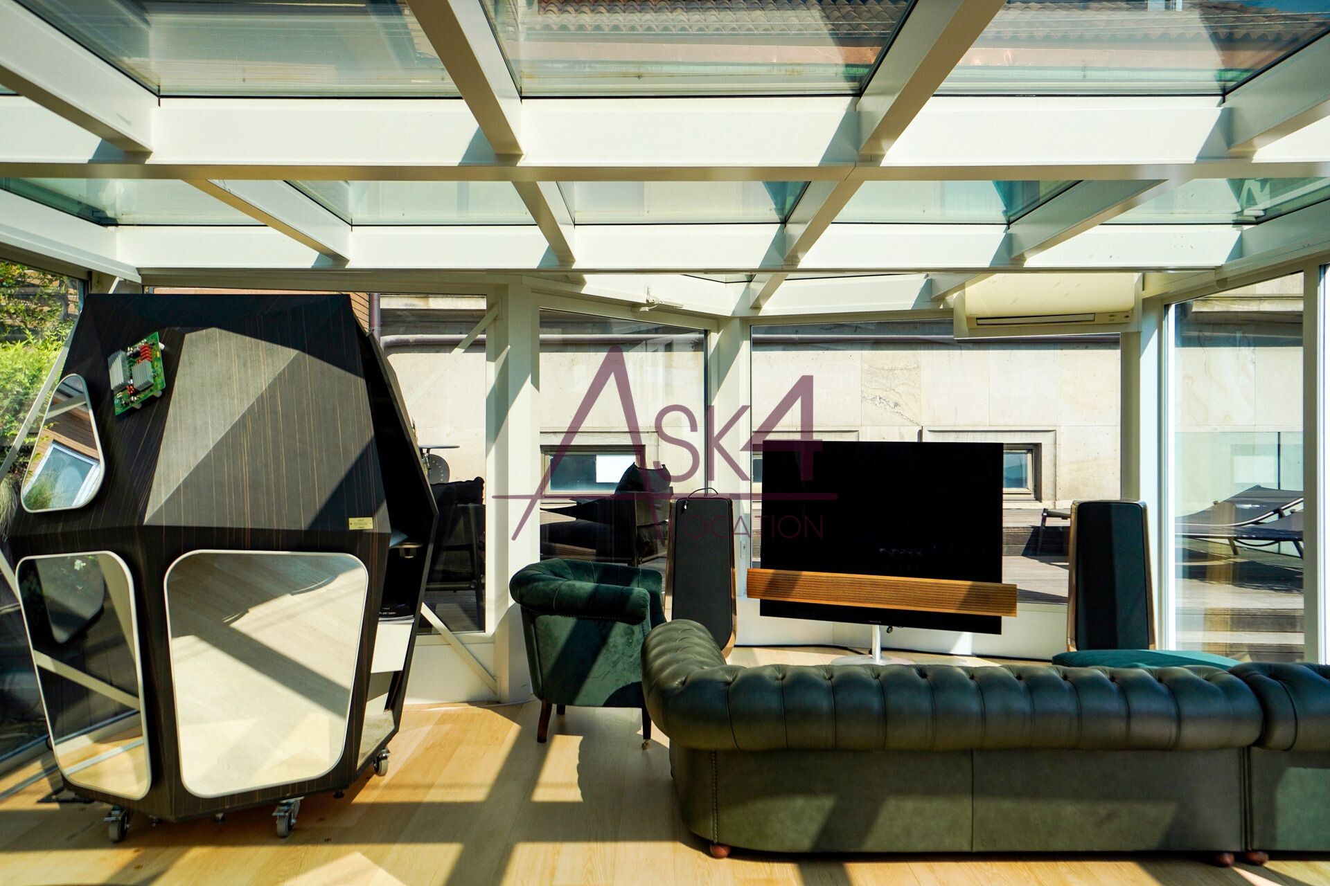 L’Attico di Raiko è una location pensata per shooting fotografici, riprese video ed eventi professionali. L’abitazione si apre su ambienti finemente arredati: un ampio living, una sala da pranzo con tavolo in marmo e una spettacolare veranda vetrata che dialoga con l’esterno.