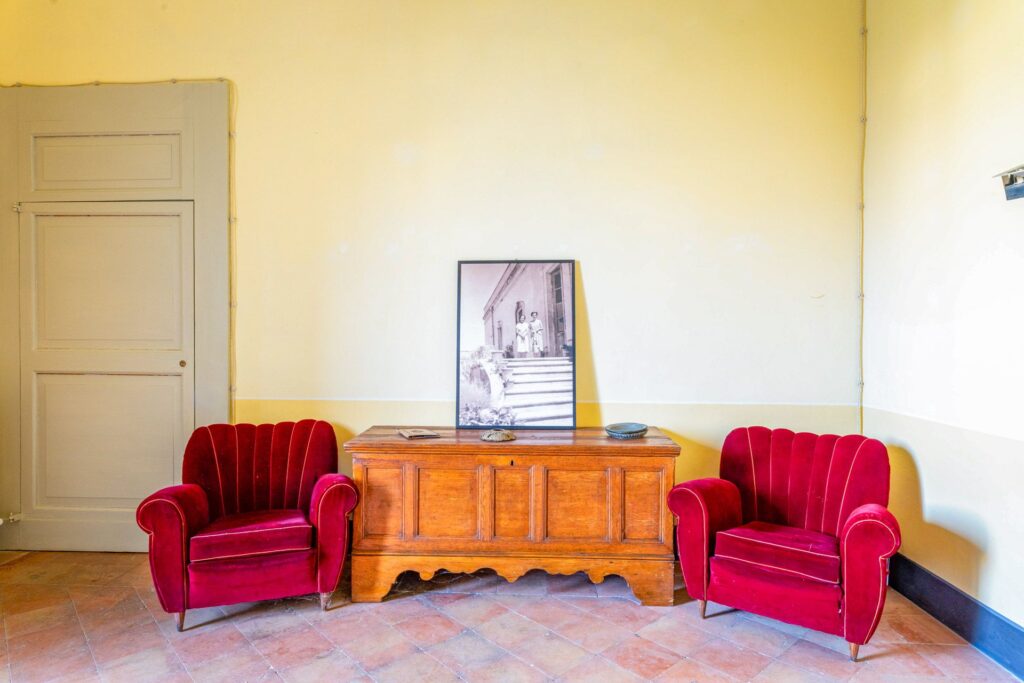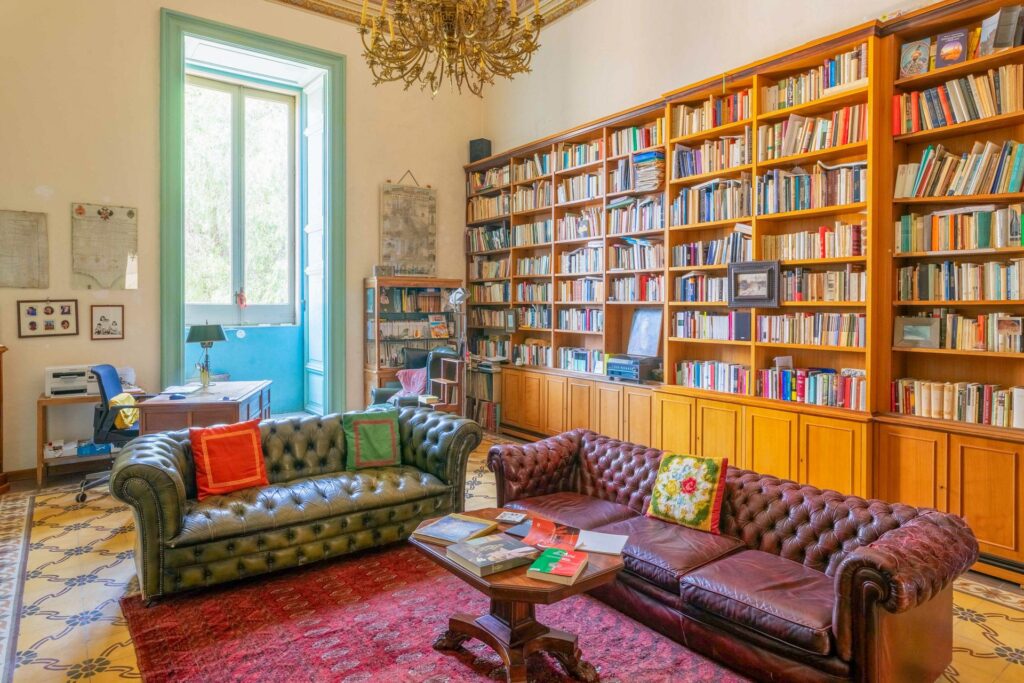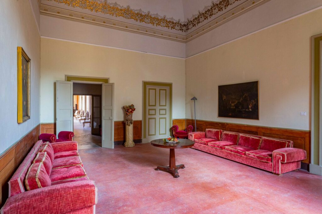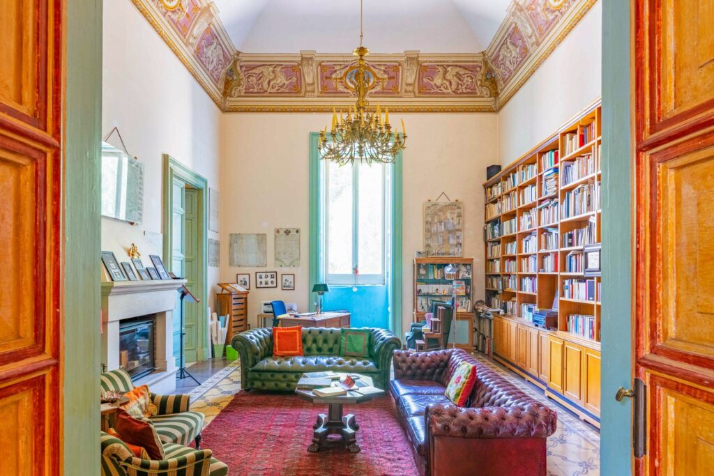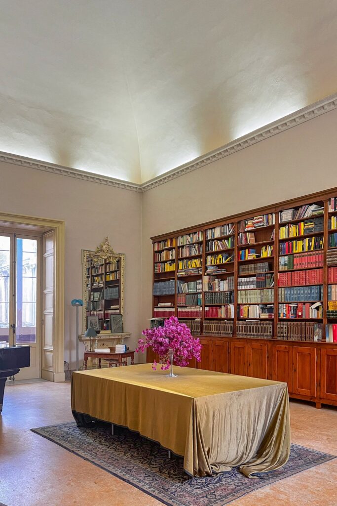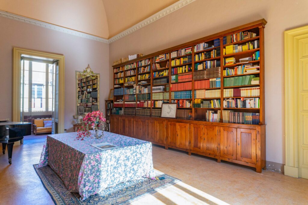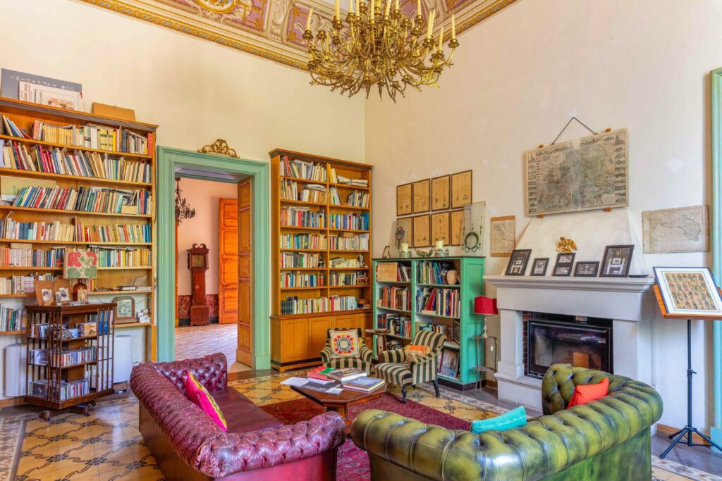 All’interno, ampi ambienti con soffitti affrescati, librerie d’epoca, camini decorativi e arredi storici offrono scenografie ricche di personalità. Ogni sala conserva un’identità visiva precisa, perfetta per allestimenti su misura o come fondale naturale per produzioni dal forte impatto visivo.