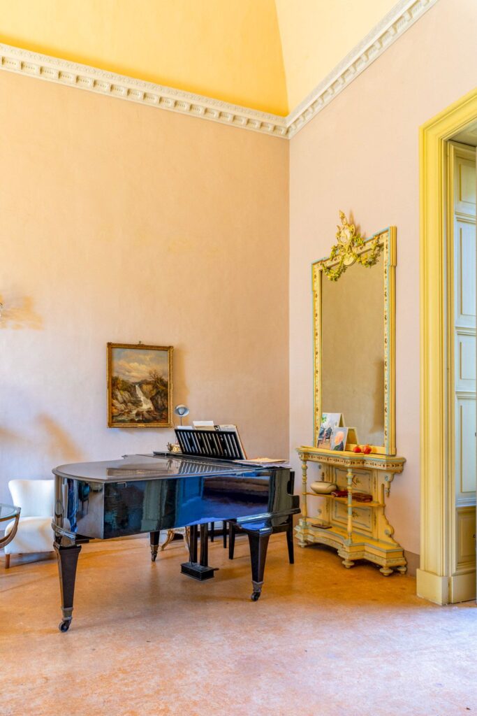 La Dimora Storica di Jim sorprende per la sua capacità di coniugare heritage architettonico e versatilità funzionale. Dagli ambienti decorati con opere d’arte e strumenti musicali agli spazi più informali con volte in pietra a vista, la location si adatta a set cinematografici, editoriali di moda ed eventi culturali o istituzionali.