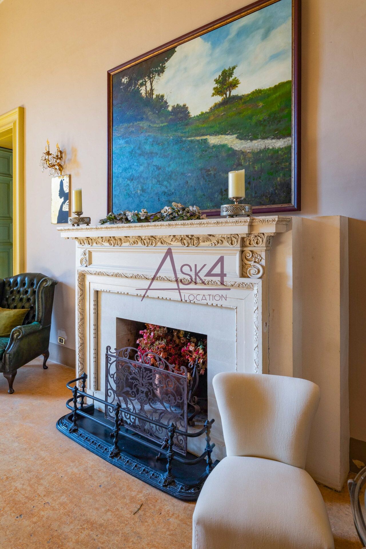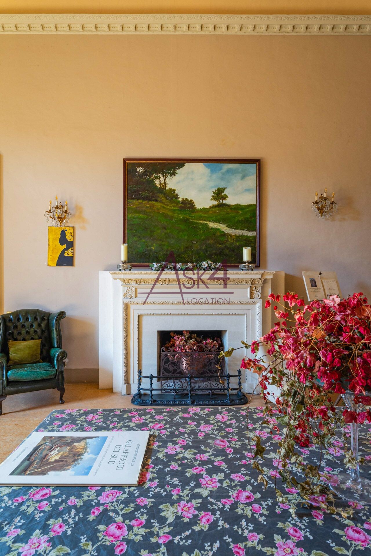 All’interno, ampi ambienti con soffitti affrescati, librerie d’epoca, camini decorativi e arredi storici offrono scenografie ricche di personalità. Ogni sala conserva un’identità visiva precisa, perfetta per allestimenti su misura o come fondale naturale per produzioni dal forte impatto visivo.