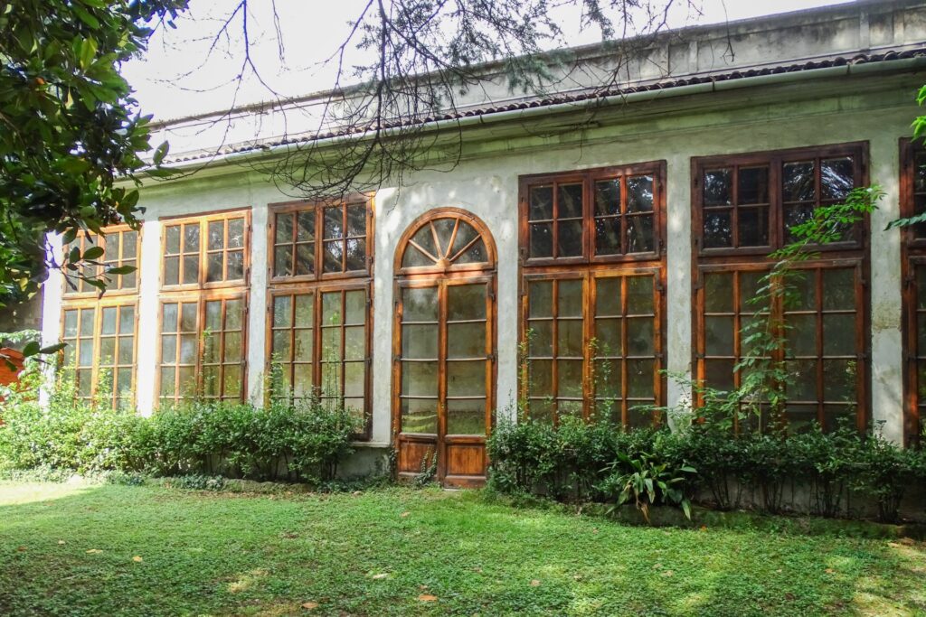 Il vasto giardino verdeggiante all’esterno, ricco di piante, palme e alberi curati e decorato con panche in pietra e percolati, ospita una grande serra. In questo spazio capiente è possibile allestire eventi, personalizzando la tipologia e la disposizione di arredi e catering in base ai propri gusti.