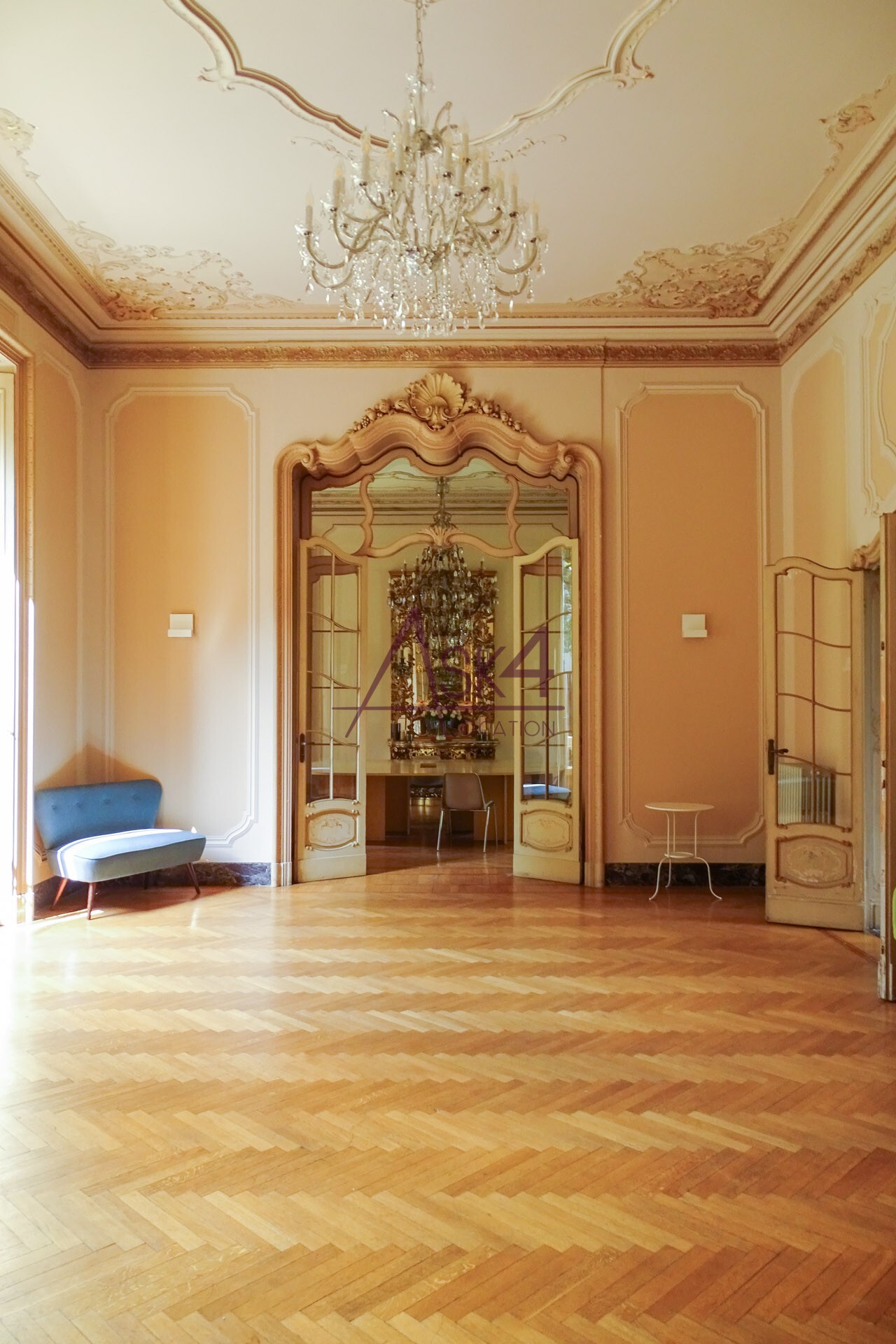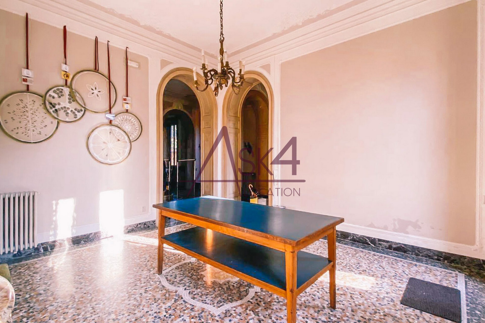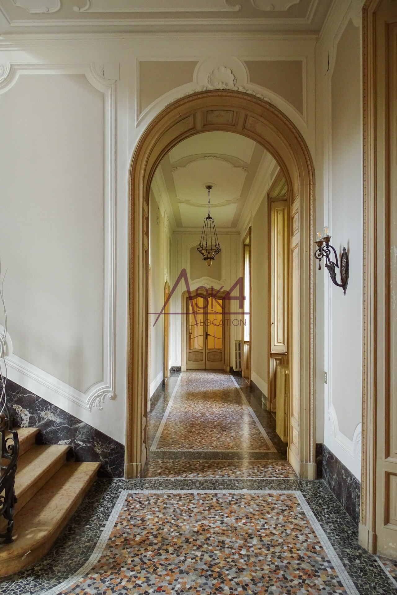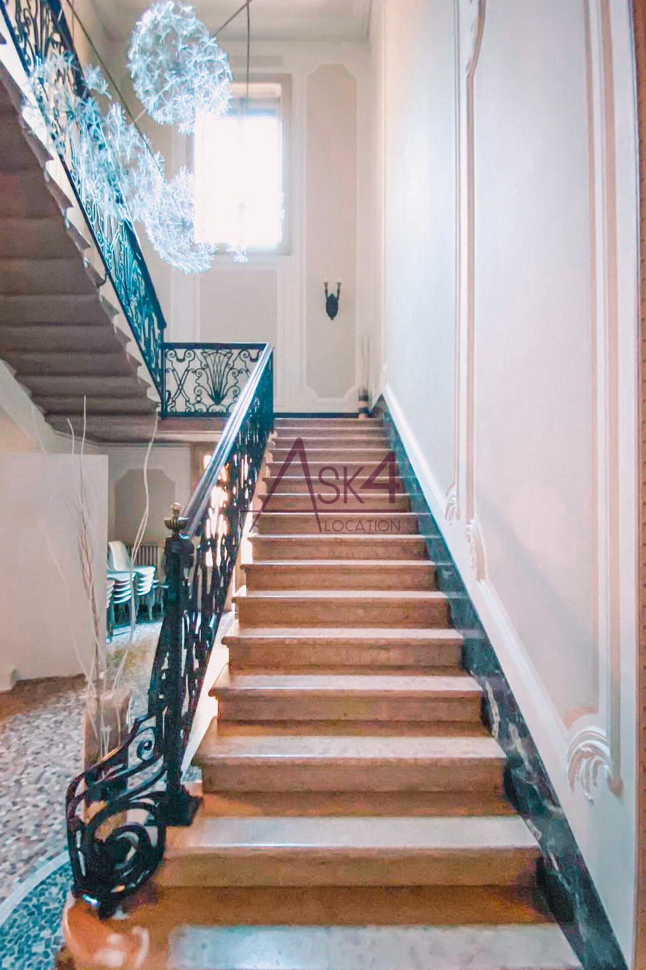 La struttura principale che compone Dimora Storica di Tiberio è articolata in un vasto edificio che si chiude attorno al maestoso cancello d’ingresso. L’esterno è in perfetto stato di manutenzione e si caratterizza per il colore giallo e le antiche balconate in pietra. Entrando nella villa si attraversano numerose stanze e sale dove colpiscono i pavimenti e le scale che portano ai piani superiori, entrambi in marmo. Sono degni di nota anche i cornicioni in legno decorato e dipinto delle porte, i lampadari e il caminetto antico. La scena si diversifica nelle sale con pavimentazione in parquet arredate con elementi di design moderni come tavoli, sedie, cassettiere e armadi. Le possibilità di girare scene o scattare foto sono infinite: basta dare sfogo alla fantasia.