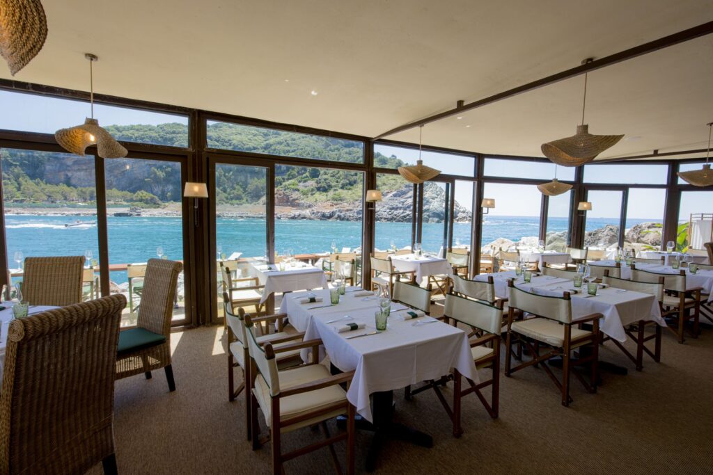 La zona indoor, interamente vetrata, offre un’alternativa scenografica per shooting e interviste in ambienti coperti, senza rinunciare alla luce naturale e alla vista sul mare. Gli interni combinano materiali caldi come vimini e legno con un design essenziale e funzionale, pensato per garantire versatilità e comfort anche durante produzioni complesse.