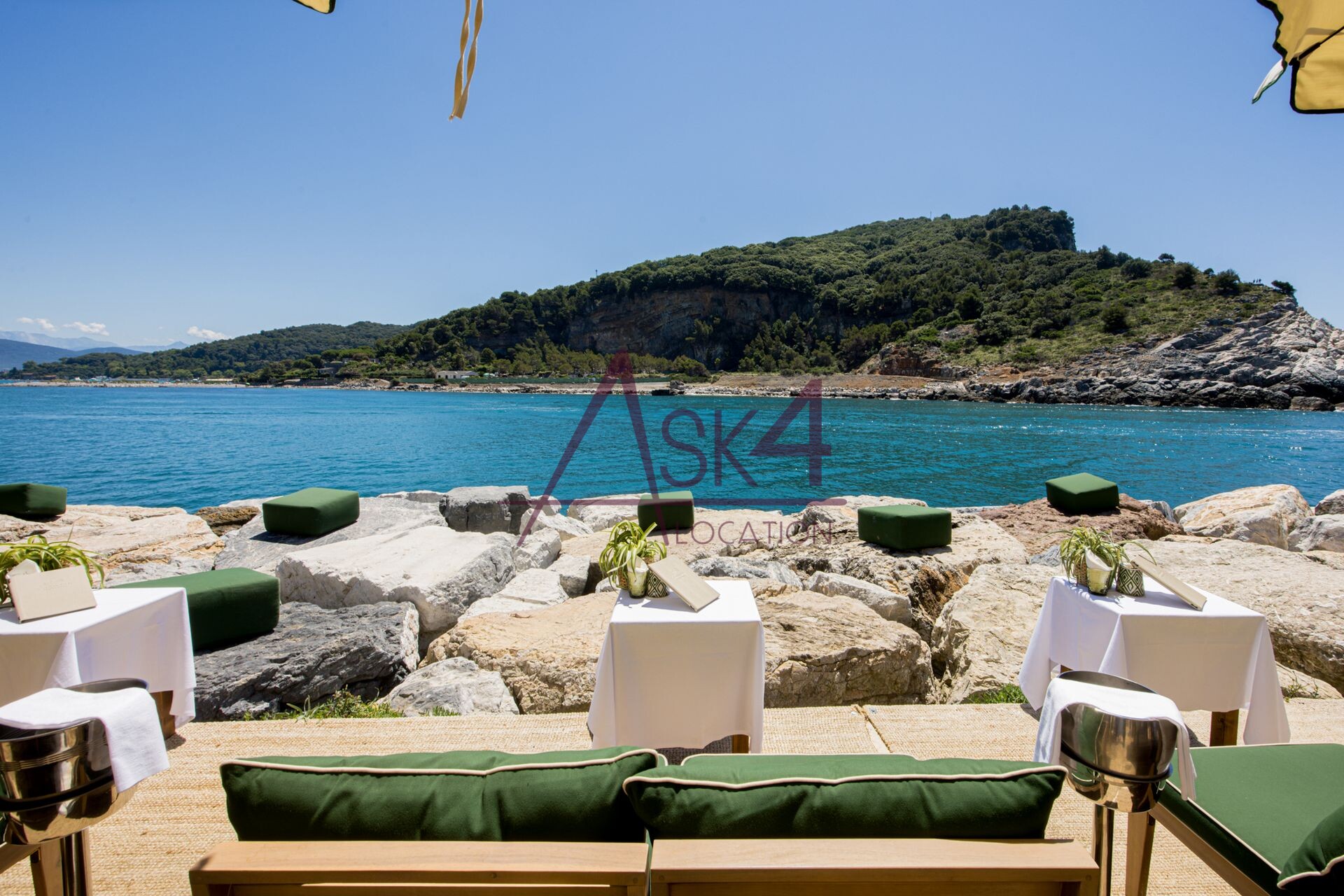 Lo Spazio Eventi dei Blasini si sviluppa su una suggestiva pedana a picco sul mare, immersa nella cornice naturale della costa ligure. L’ambiente è ideale per shooting di moda, riprese cinematografiche e allestimenti per eventi corporate o presentazioni stampa. La disposizione su più livelli e l’affaccio diretto sull’acqua rendono ogni inquadratura dinamica e di grande impatto visivo.