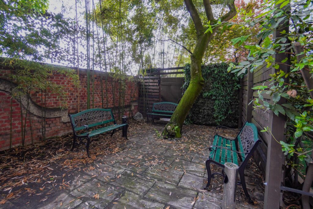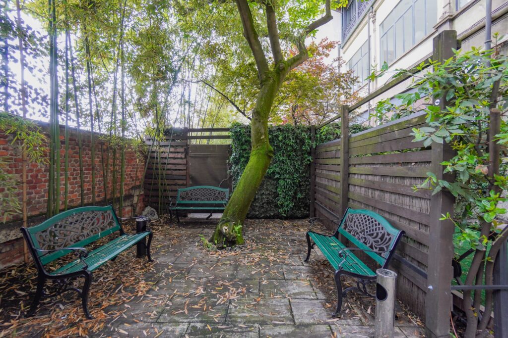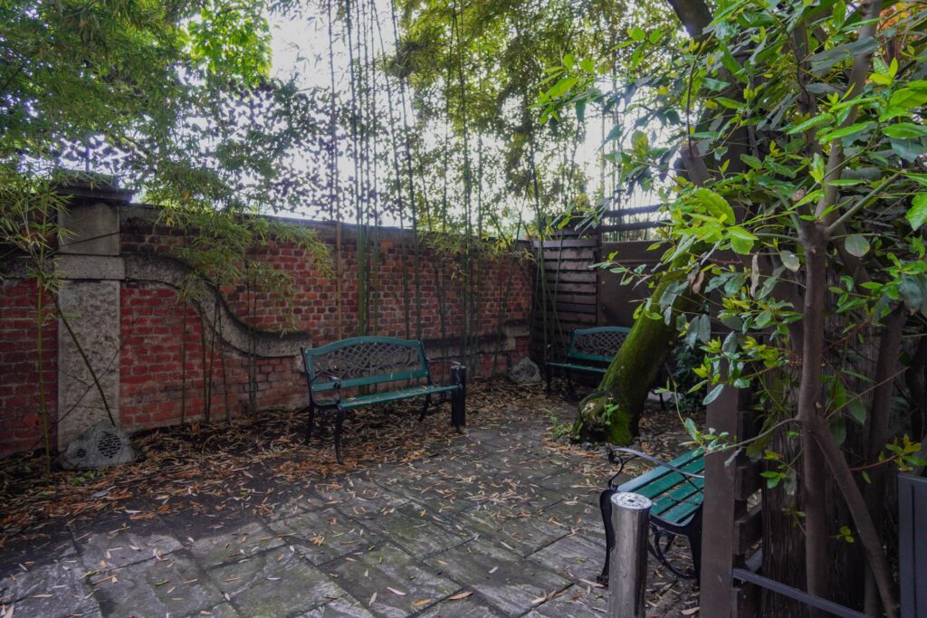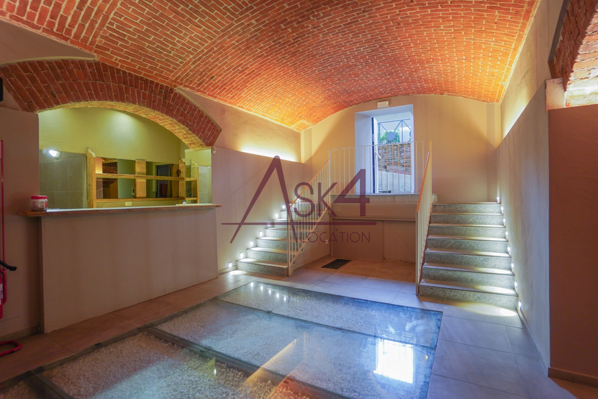 Una zona reception con bancone in muratura e retroilluminazione, insieme a una corte esterna, completano l’offerta logistica della location. L’area esterna, discreta e alberata, rappresenta uno sfondo ideale per shooting in esterna o piani d’appoggio per troupe e attrezzature.