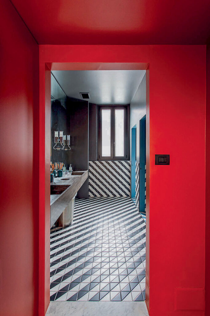 Completano l’offerta ambienti di servizio come la zona bar con bancone in legno naturale e un corridoio verde con piante tropicali, ideali come sfondi per riprese lifestyle o dettagli di backstage. Anche i bagni, dal design ricercato con rivestimenti geometrici e lavabi in pietra, possono diventare location per scatti d’effetto.