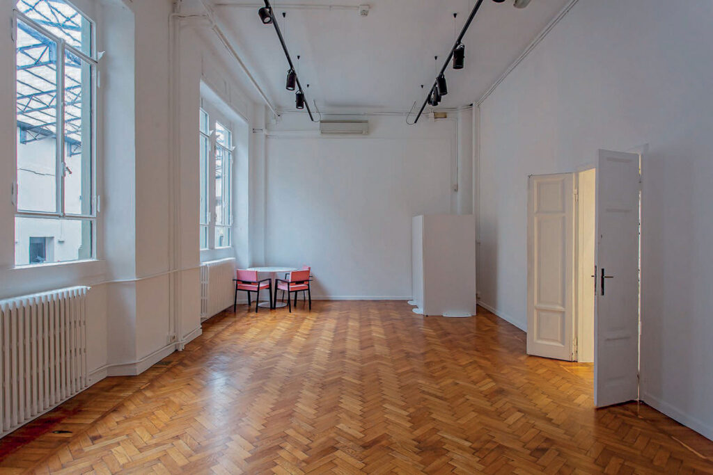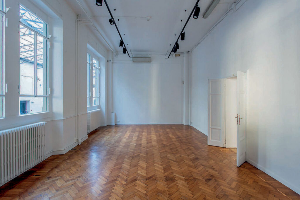 Oltre all’open space principale, la location include ambienti secondari come una sala con pavimenti in parquet e alti soffitti, perfetta per shooting di moda o ritratti editoriali. Il contrasto tra il calore del legno e l’essenzialità delle pareti bianche offre uno sfondo suggestivo per produzioni che cercano un equilibrio tra rigore e intimità visiva.
