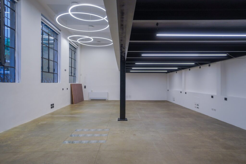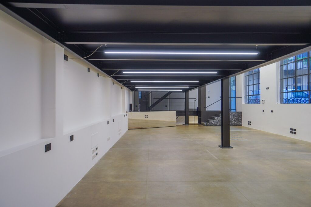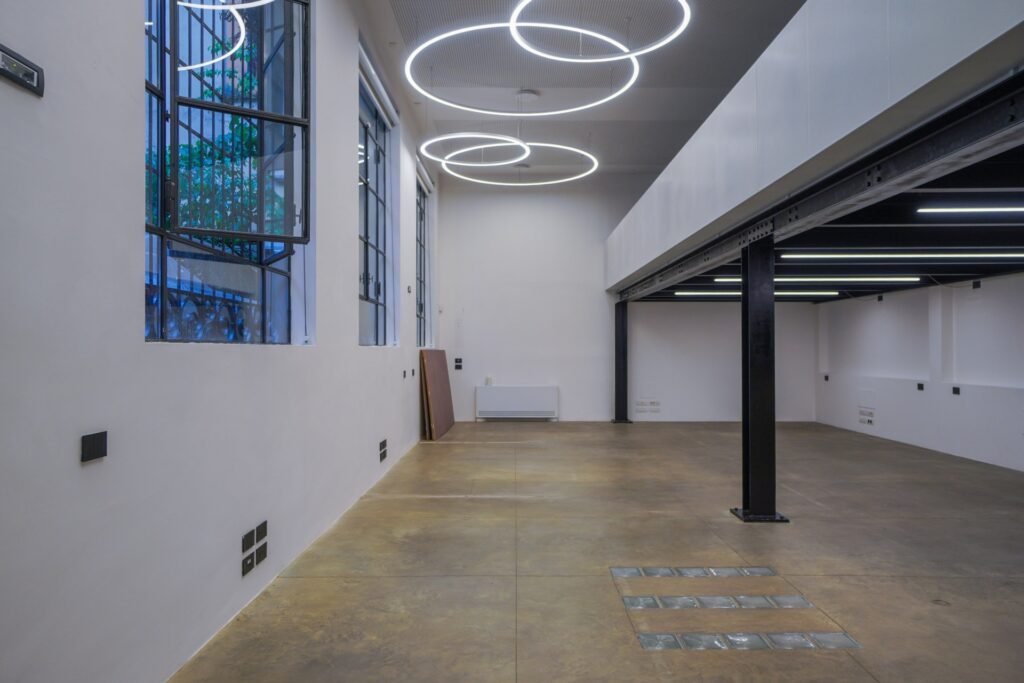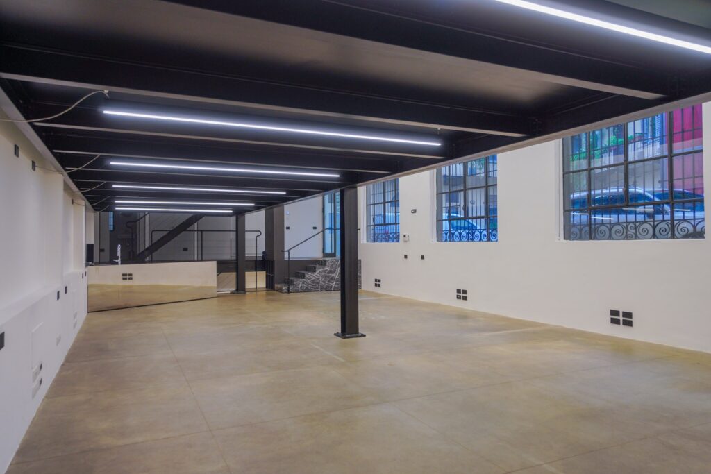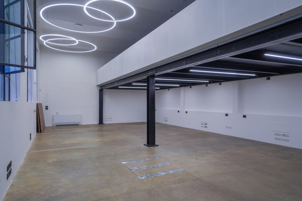 Lo Spazio Insolito di Eren si sviluppa su due livelli e offre un ambiente dal carattere industriale, concepito per accogliere shooting fotografici, riprese video e produzioni pubblicitarie. La struttura si presenta come un ampio open space, con soffitti alti e ampie vetrate che favoriscono una luce naturale omogenea, ideale per set diurni.