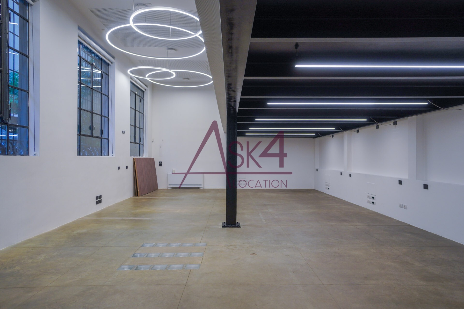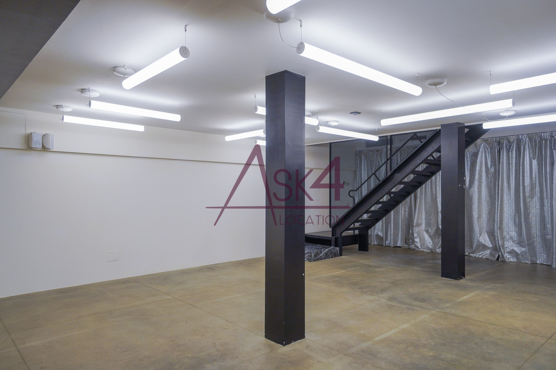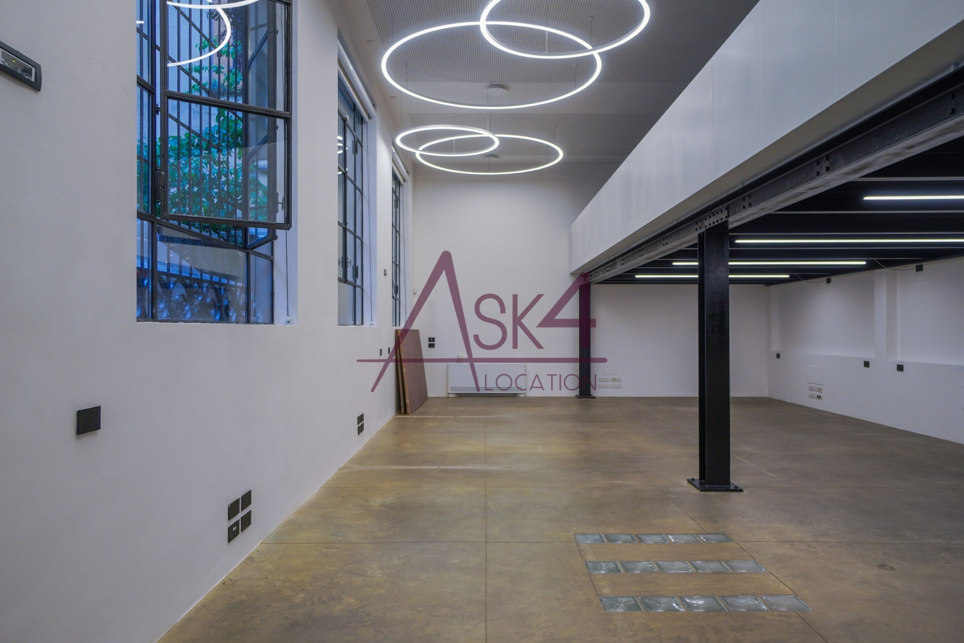 Lo Spazio Insolito di Eren si sviluppa su due livelli e offre un ambiente dal carattere industriale, concepito per accogliere shooting fotografici, riprese video e produzioni pubblicitarie. La struttura si presenta come un ampio open space, con soffitti alti e ampie vetrate che favoriscono una luce naturale omogenea, ideale per set diurni.