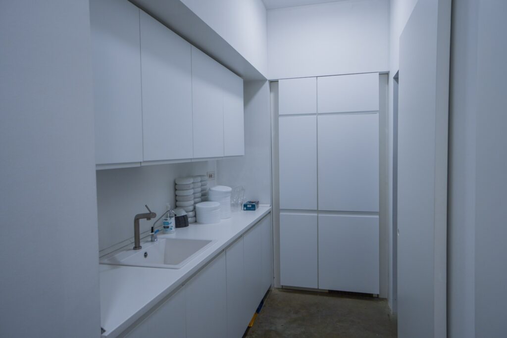 Dal punto di vista tecnico, lo spazio è dotato di illuminazione a LED, postazione trucco, zona kitchen e un soppalco panoramico perfetto per regia o inquadrature dall’alto. La distribuzione razionale degli ambienti consente di gestire agevolmente ogni fase della produzione.