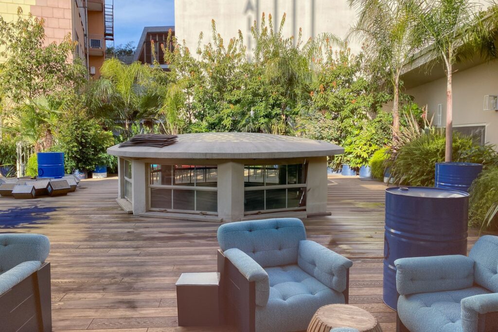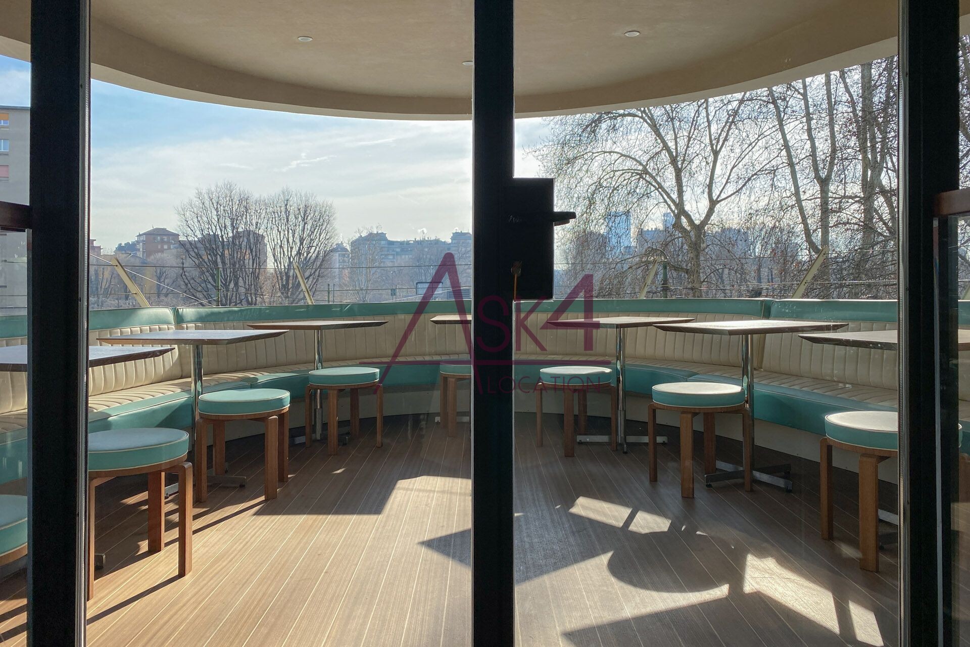 Il percorso si conclude con una terrazza panoramica: deck in legno, sedute lounge e vista sui tetti meneghini offrono lo sfondo ideale per shooting panoramici e riprese in esterna, oltre a essere un’area perfetta per coffee break di convention, presentazioni digitali e talk di settore.