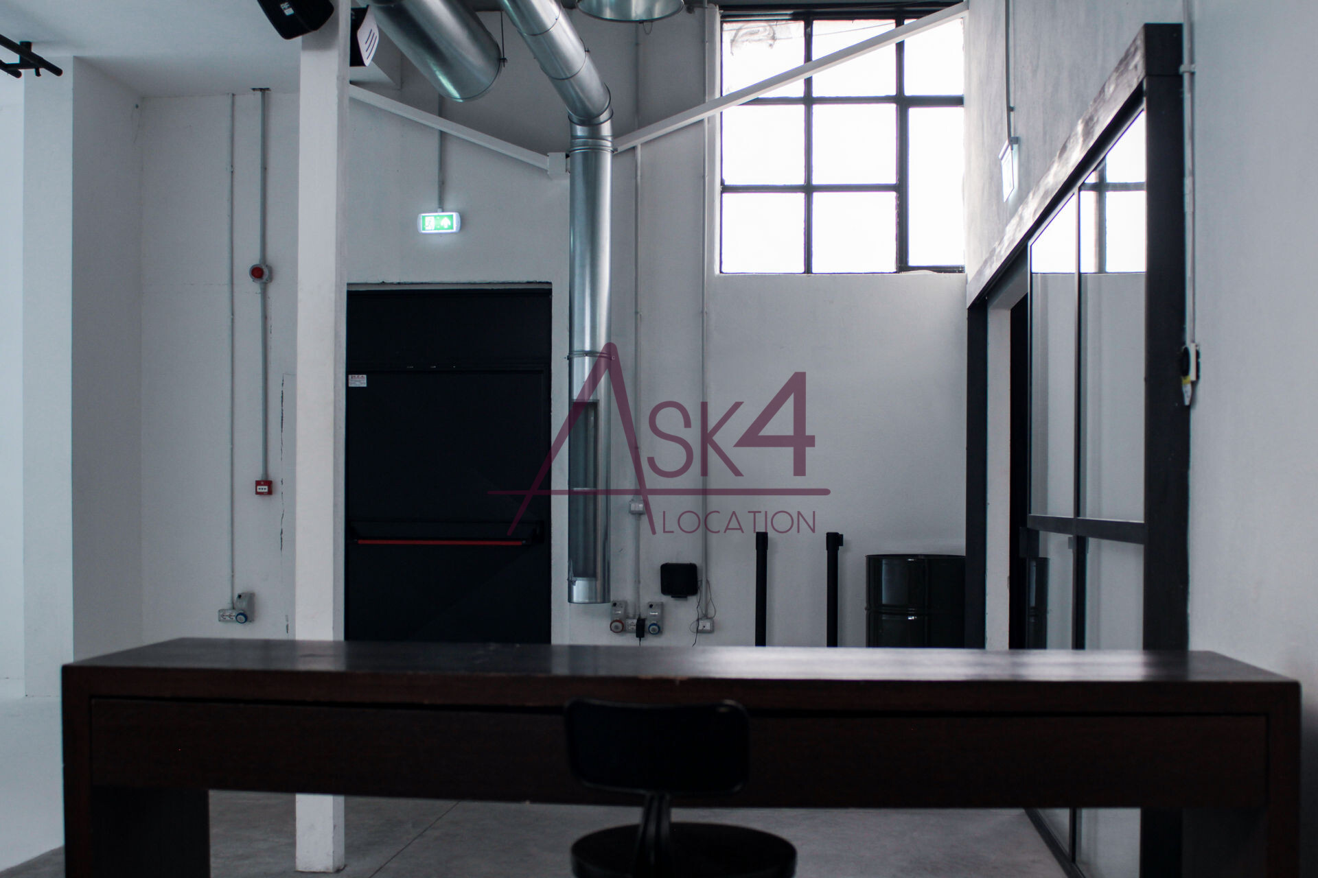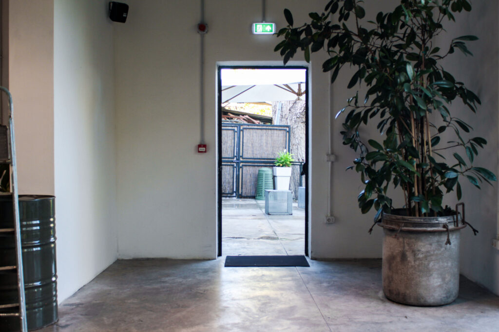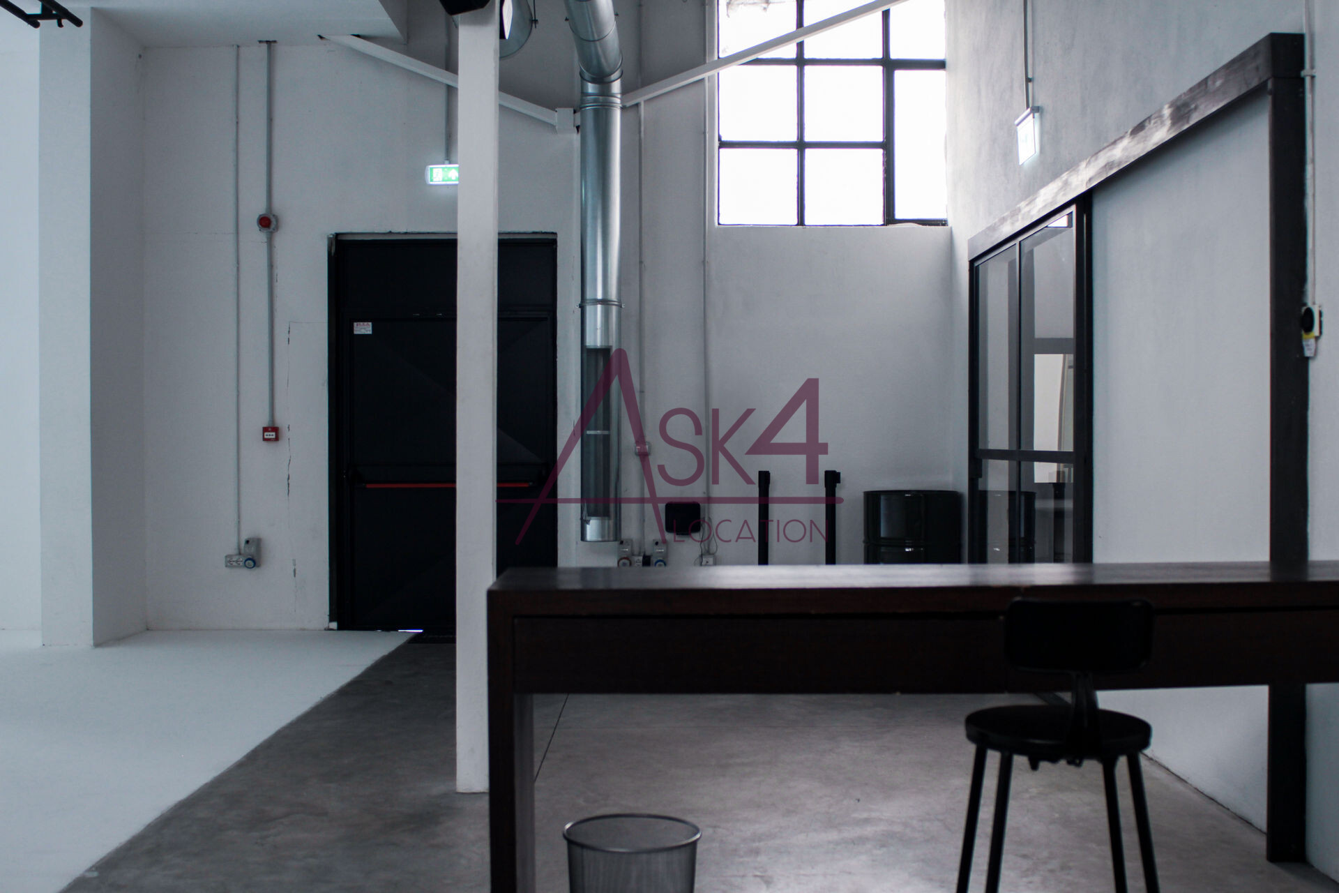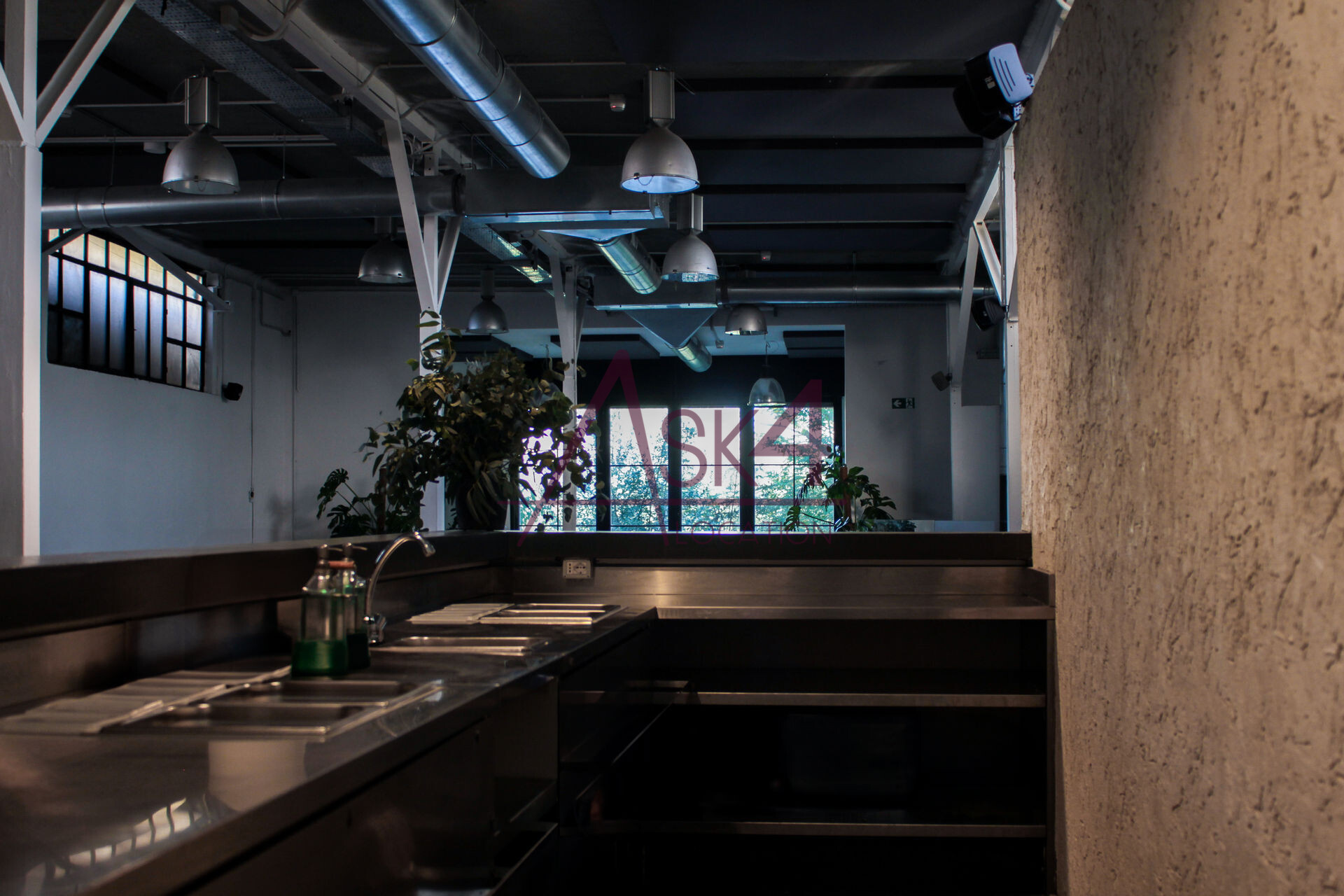 L’atmosfera è definita da un’estetica industriale: cemento levigato a pavimento, tubi a vista, grandi finestre con telaio in ferro e arredi minimali contribuiscono a creare un’identità visiva forte e autentica, perfetta come sfondo scenografico per riprese dal taglio urbano o contemporaneo.