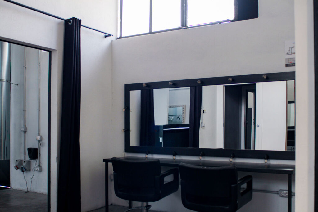 Completano la location postazioni trucco con specchi retroilluminati, zona relax per il team tecnico e creativo, e una terrazza urbana delimitata da elementi in ferro e vegetazione, che aggiunge un ulteriore spazio versatile all’intera esperienza produttiva.