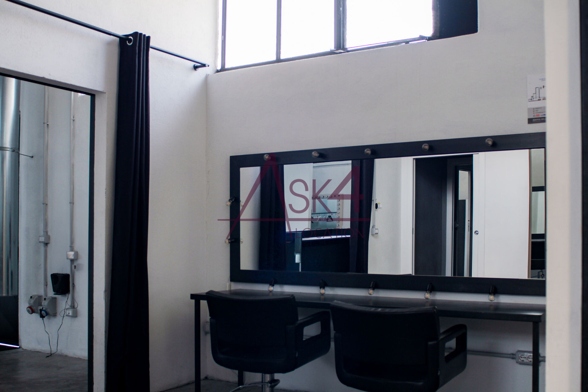 Dotato di area accoglienza con bancone in muratura, zona cucina attrezzata e impianti a vista, lo spazio include anche una terrazza esterna fruibile come sfondo per shooting panoramici o interviste all’aperto, oltre a postazioni make-up e una sala posa total white con griglia americana.