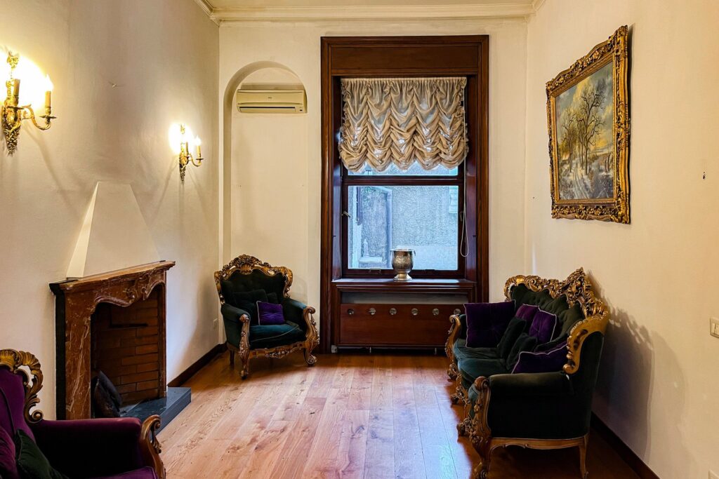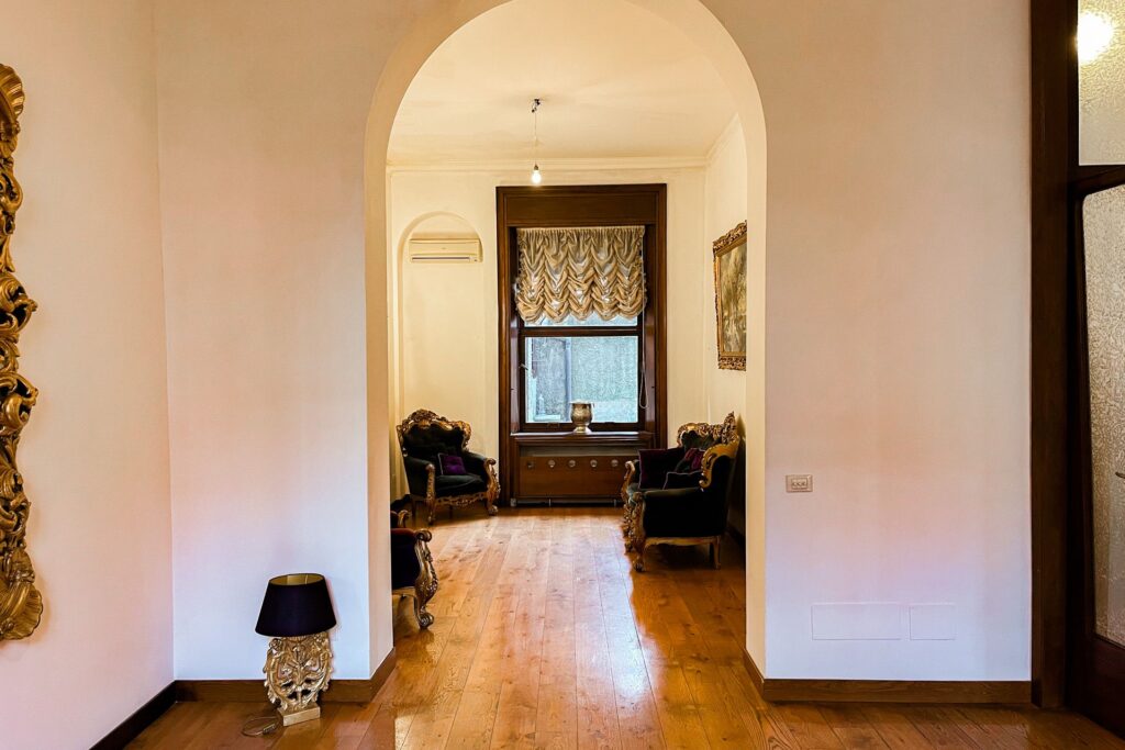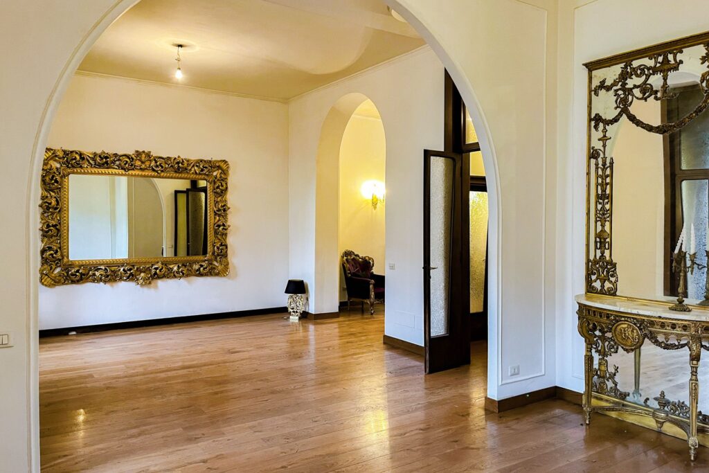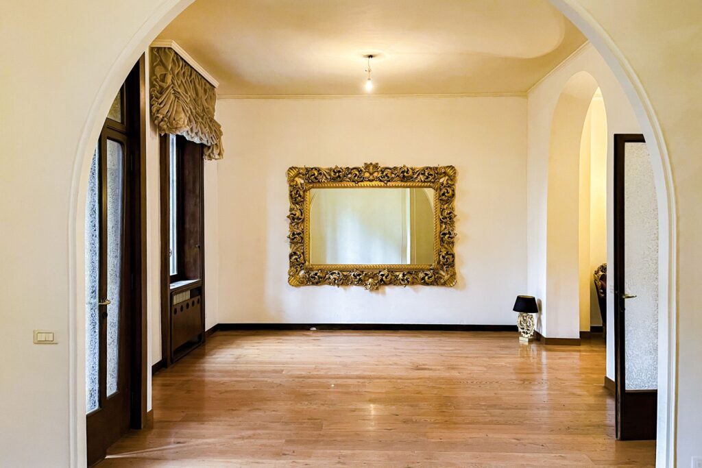 Tra i tratti distintivi dell’ambiente, spiccano i grandi specchi con cornici barocche, elementi decorativi dorati e arredi d’epoca che valorizzano lo stile della villa, donando carattere a ogni scatto. Le ampie finestre incorniciate da tendaggi classici garantiscono un’ottima illuminazione naturale, rendendo ogni sala adatta anche per riprese in luce ambiente.