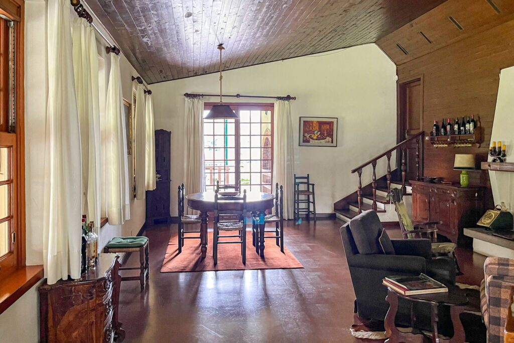 Lo stile della villa richiama le atmosfere di montagna, con arredi d’epoca, pareti in legno, tessuti caldi e complementi vintage che conferiscono un’identità precisa e riconoscibile alla location. Le molteplici stanze — tra cui una biblioteca con boiserie su misura, una cucina rustica e camere dai toni floreali o pastello — offrono ambientazioni variegate per shooting editoriali, moda e storytelling visivo.