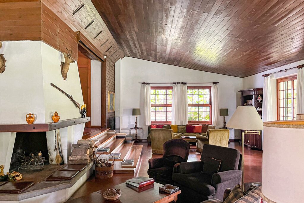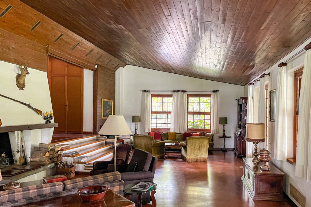 La Villa di Iwona, situata in un contesto boschivo della provincia di Monza e Brianza, è una location scenografica pensata per shooting fotografici, produzioni video e set cinematografici. L’ambiente principale si sviluppa attorno a un ampio salone rivestito in legno, con soffitti inclinati e grandi finestre che regalano una luce morbida e diffusa, ideale per riprese indoor dal tono intimo e narrativo.