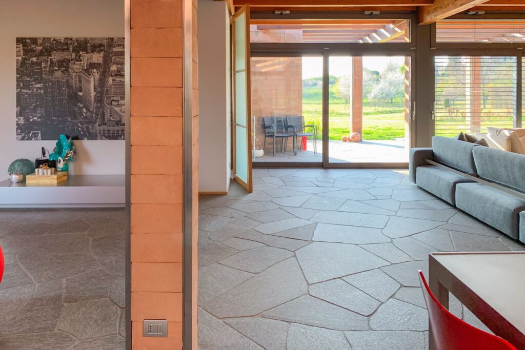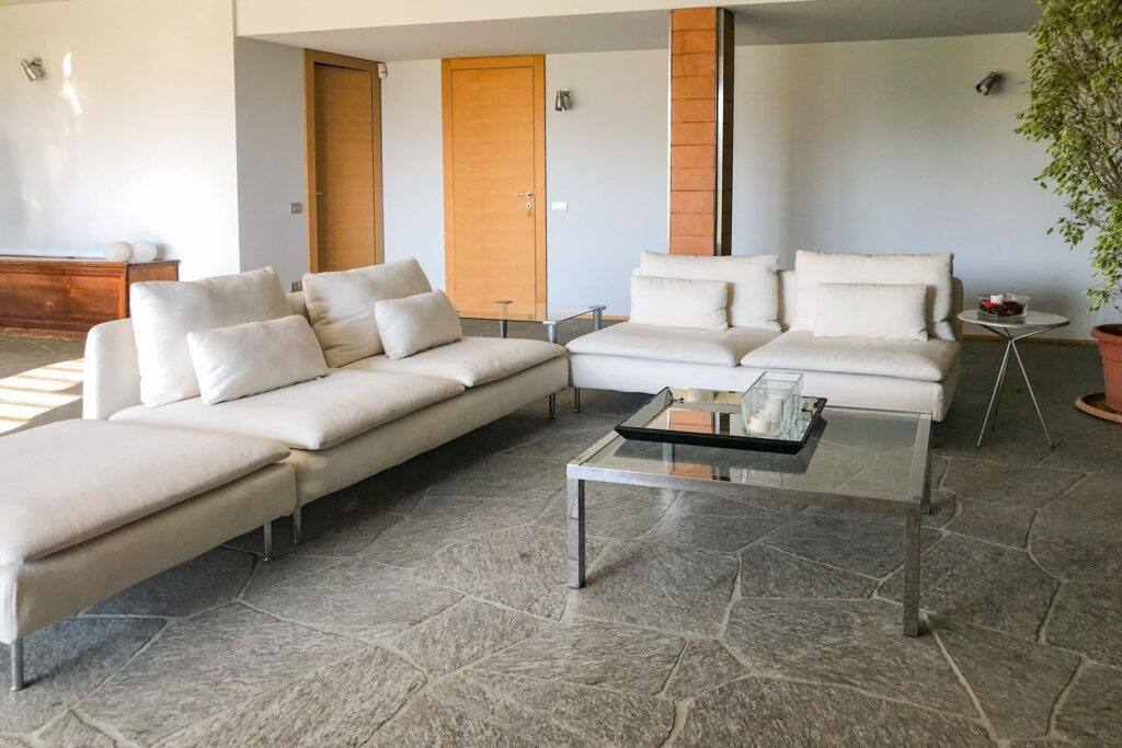 L’arredamento di questa villa è un mix equilibrato tra lo stile moderno e quello shabby chic. Gli ampi spazi sono strutturati in modo da creare un’atmosfera calda e rilassante.