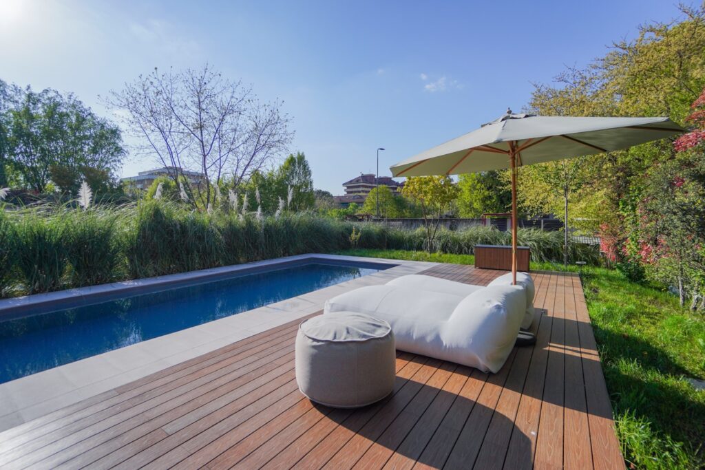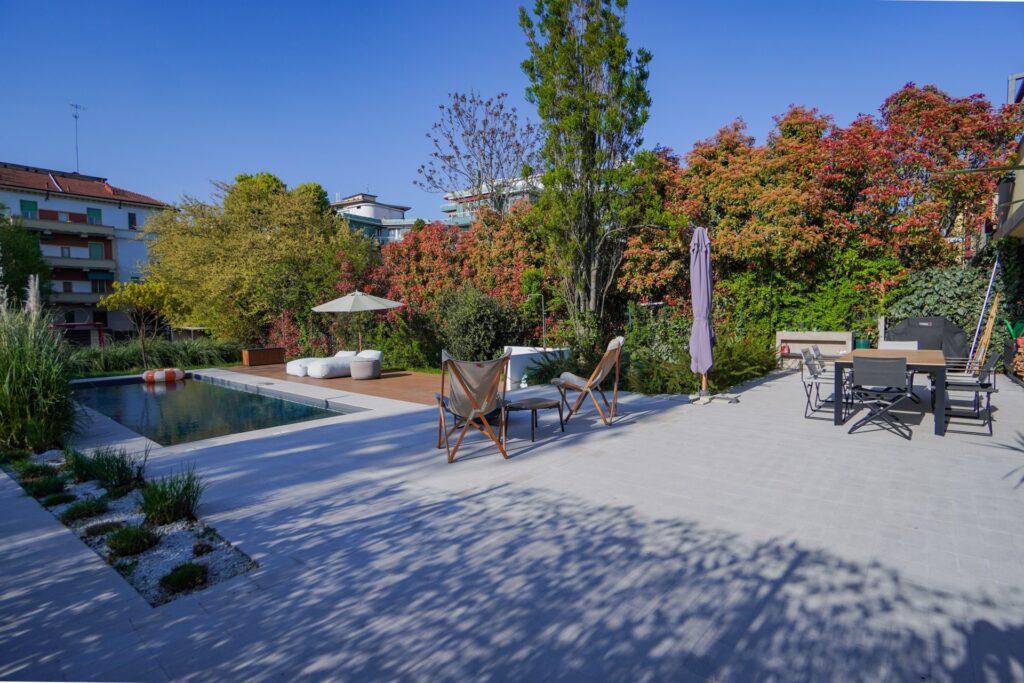 Gli esterni della Villa di Sophie non sono da meno. Il giardino con cortile, piscina e zona barbecue offre uno spazio perfetto per eventi all’aperto, feste private o come ulteriore set per shooting e produzioni.