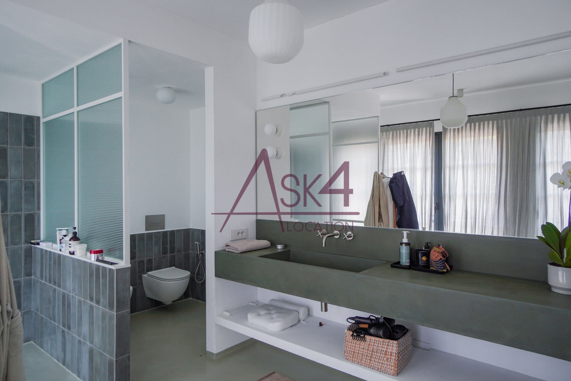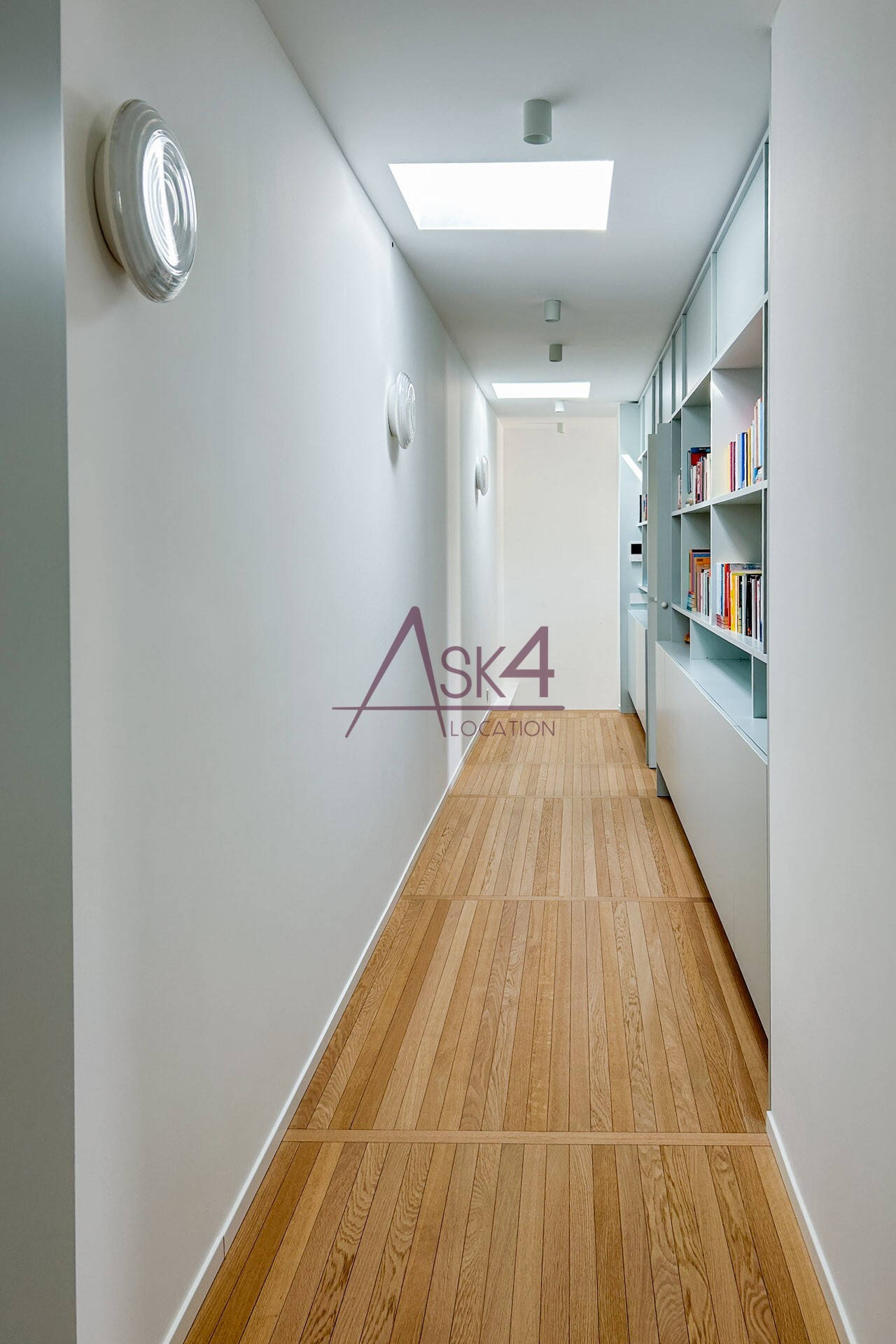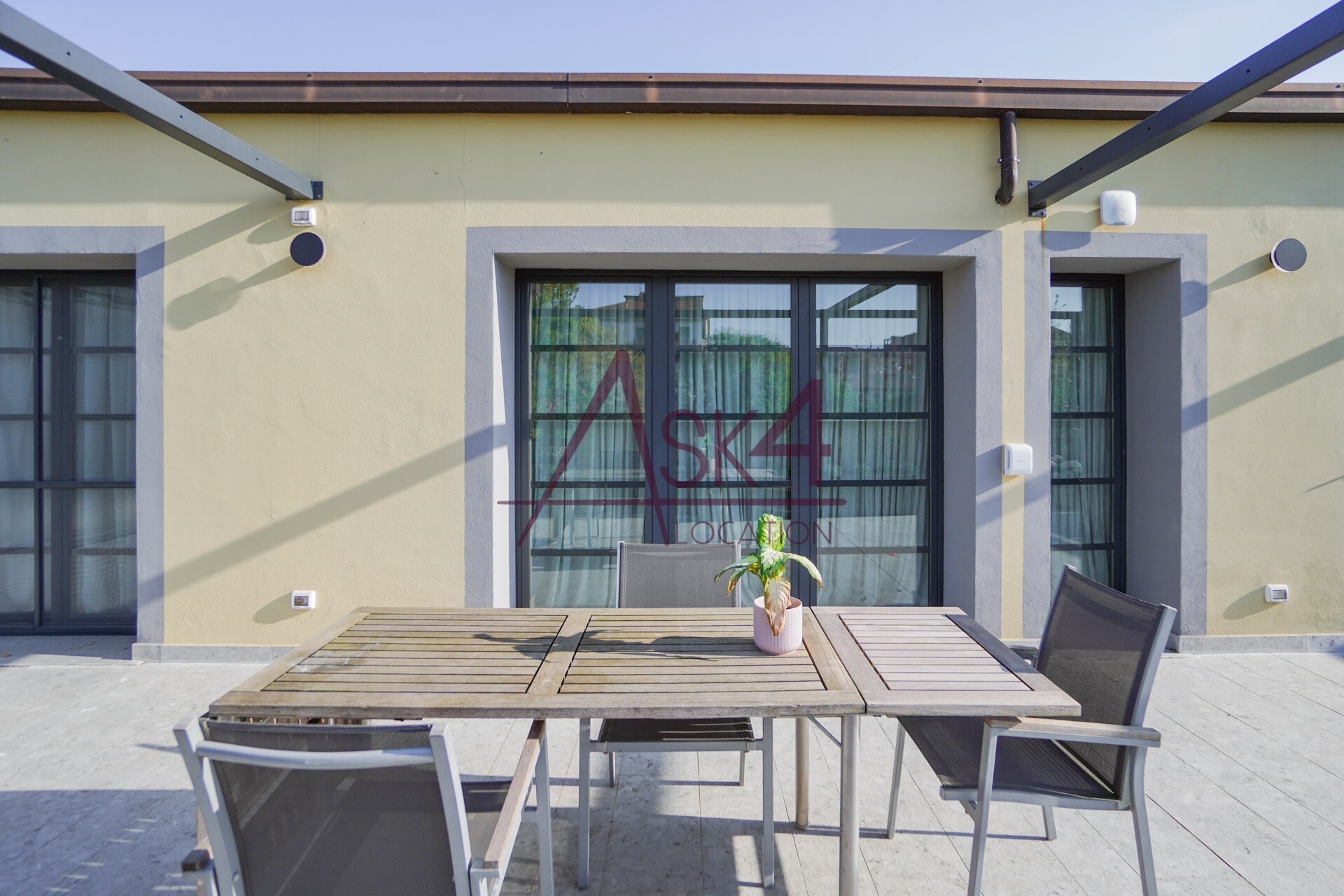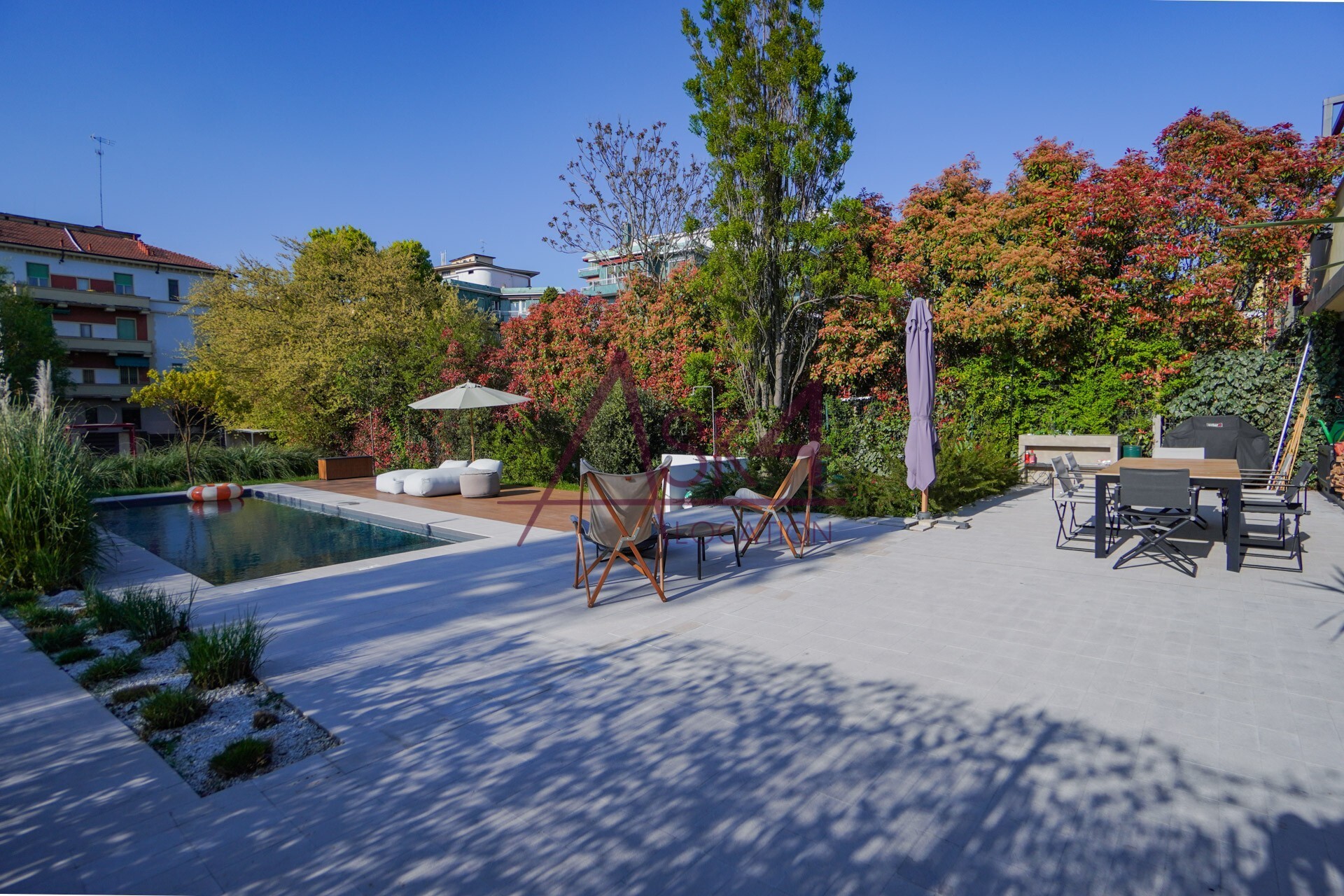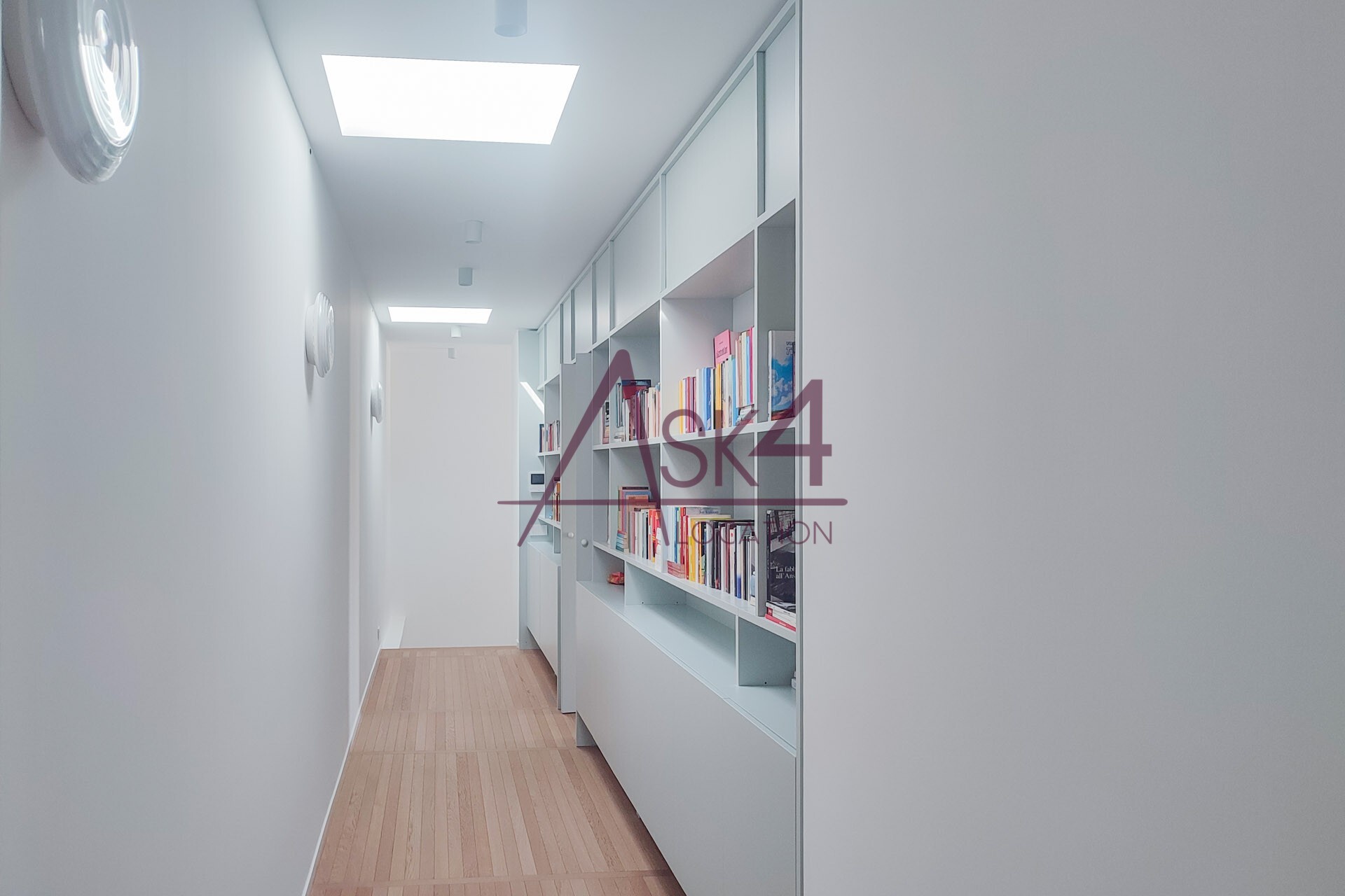 La combinazione di pavimentazione in resina, parquet e marmo crea un’atmosfera raffinata e accogliente, arricchita da grandi vetrate e lucernari che inondano gli interni di luce naturale. Ogni dettaglio è pensato per offrire il massimo comfort e stile.